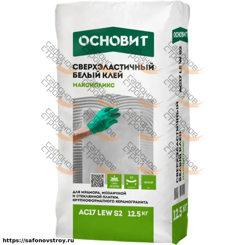 Максипликс AC17 LEW S2 Клей плиточный легкий сверхэластичный белый 12.5 кг