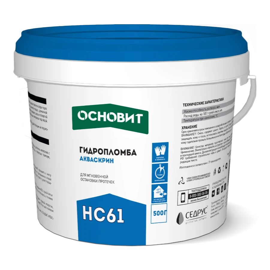 Гидропломба Основит Акваскрин HC61 предназначена для остановки протечек воды через трещины, щели, отверстия, швы в бетонных конструкциях, кирпичной кладке, цементной штукатурке или стяжке. Применяется для гидроизоляции и ремонта подвалов, туннелей, колодцев и резервуаров. Возможно применение материала под водой.