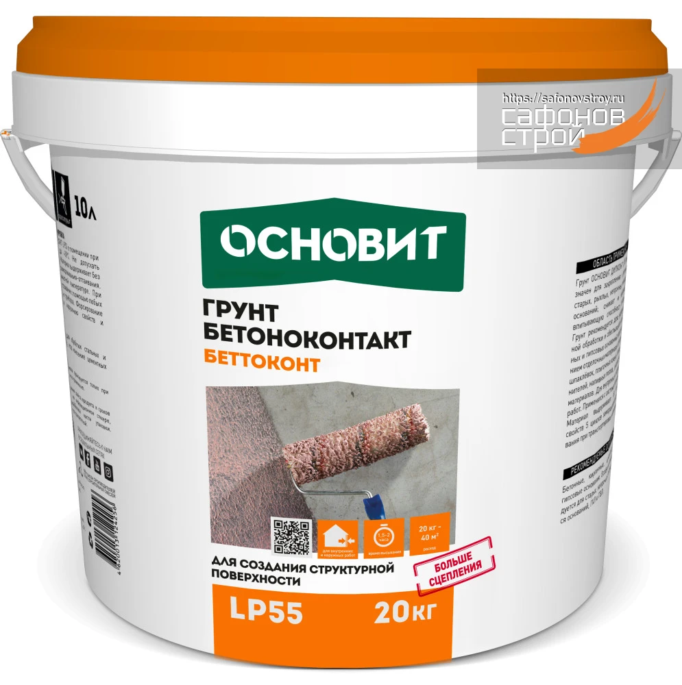 Грунт Основит Беттоконт LP55 предназначен для предварительной обработки плотных, слабовпитывающих влагу гладких оснований. Применяется для подготовки поверхности под последующее нанесение гипсовых штукатурок