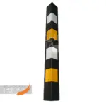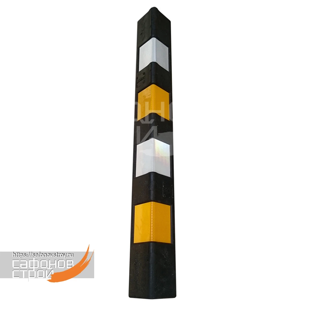 Демпфер угловой изготовлен из прочного композитного материала чёрного цвета со встроенными светоотражающими элементами желто-белого цвета. Демпфер предназначен для защиты углов стен и колонн от повреждений при ненамеренном наезде автомобиля и неаккуратном открытии дверей автомобиля. Высота элемента составляет 900 мм. Соответствует требованиям СТО 64311476-002-2015.