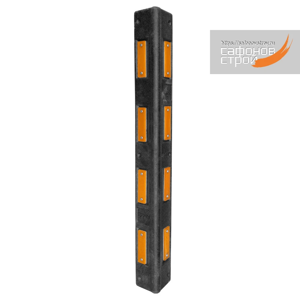 Демпфер угловой изготовлен из прочного композитного материала чёрного цвета со встроенными светоотражающими элементами желтого цвета. Демпфер предназначен для защиты углов стен и колонн от повреждений при ненамеренном наезде автомобиля и неаккуратном открытии дверей автомобиля. Высота элемента составляет 900 мм. Соответствует требованиям СТО 64311476-002-2015.