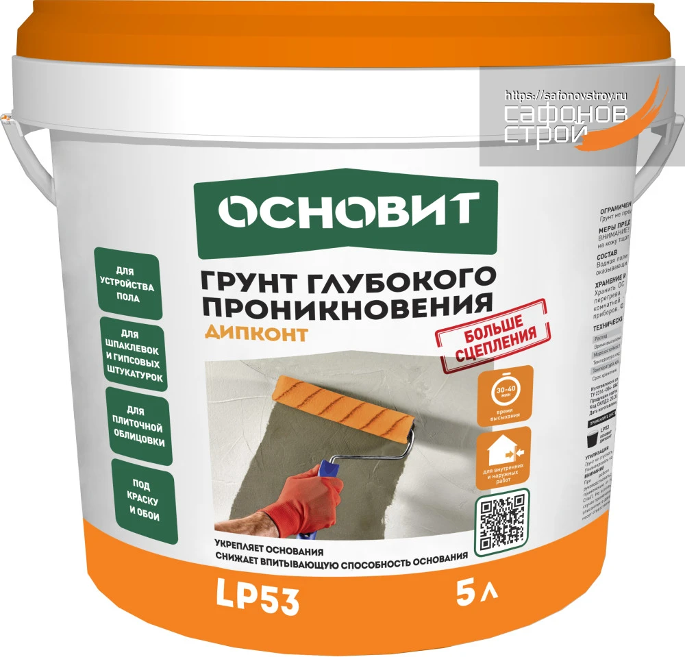 Грунт Основит Дипконт LP53 предназначен для предварительной обработки и обеспыливания минеральных оснований. Рекомендуется для закрепления и упрочнения старых, рыхлых, непрочных, мелящихся и сильновпитывающих оснований. Применяется для подготовки поверхности под последующее нанесение цементных и гипсовых смесей для устройства пола, штукатурок и шпаклёвок, плиточных и монтажных клеев, лакокрасочных материалов.