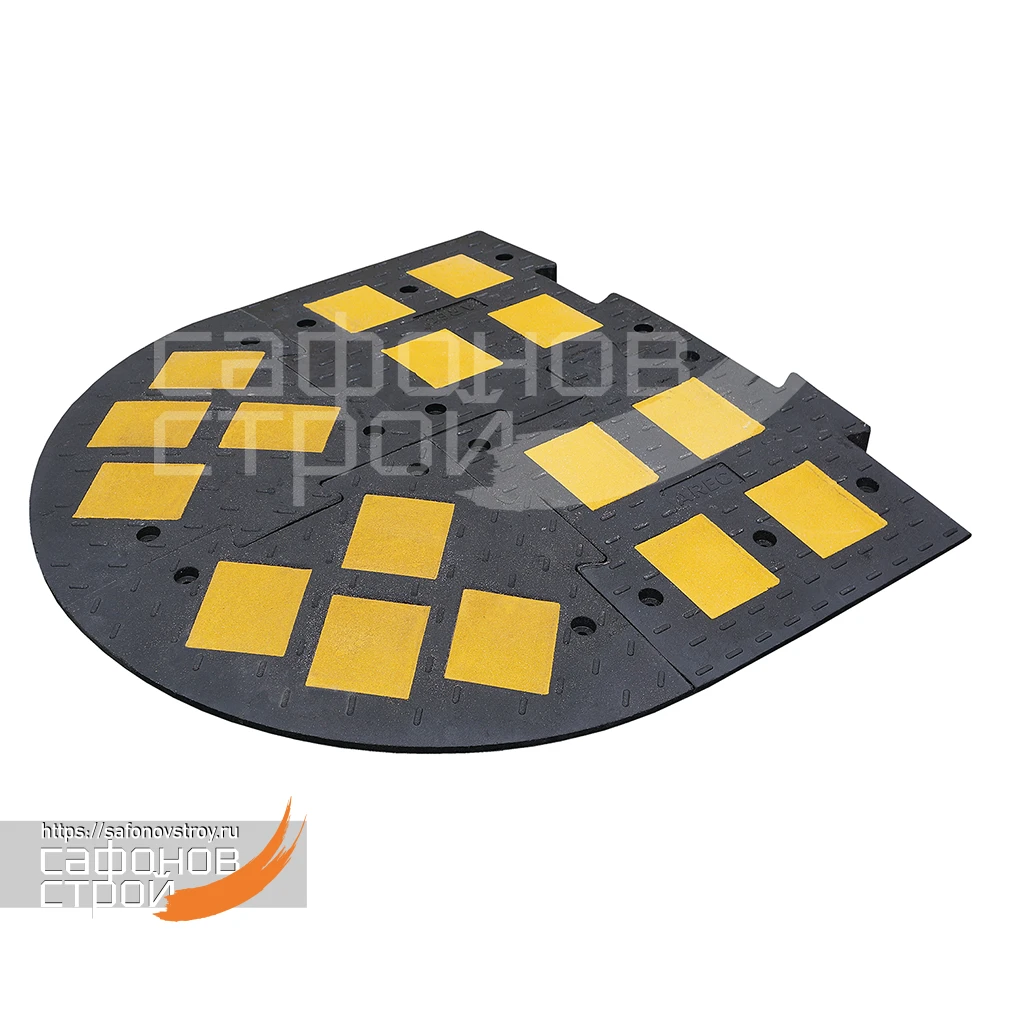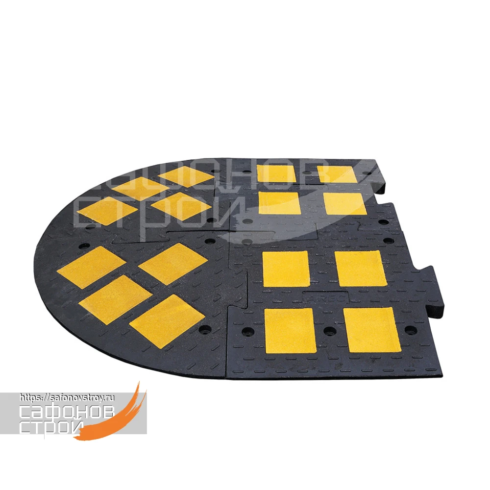 Концевой элемент для искусственной дорожной неровности изготовлен из прочного композитного материала чёрного цвета. Применяется для завершения конструкции, собранной из элементов искусственной дорожной неровности шириной 1100 мм. Изготовлен в соответствии с требованиями СТО 64311476-002-2015.