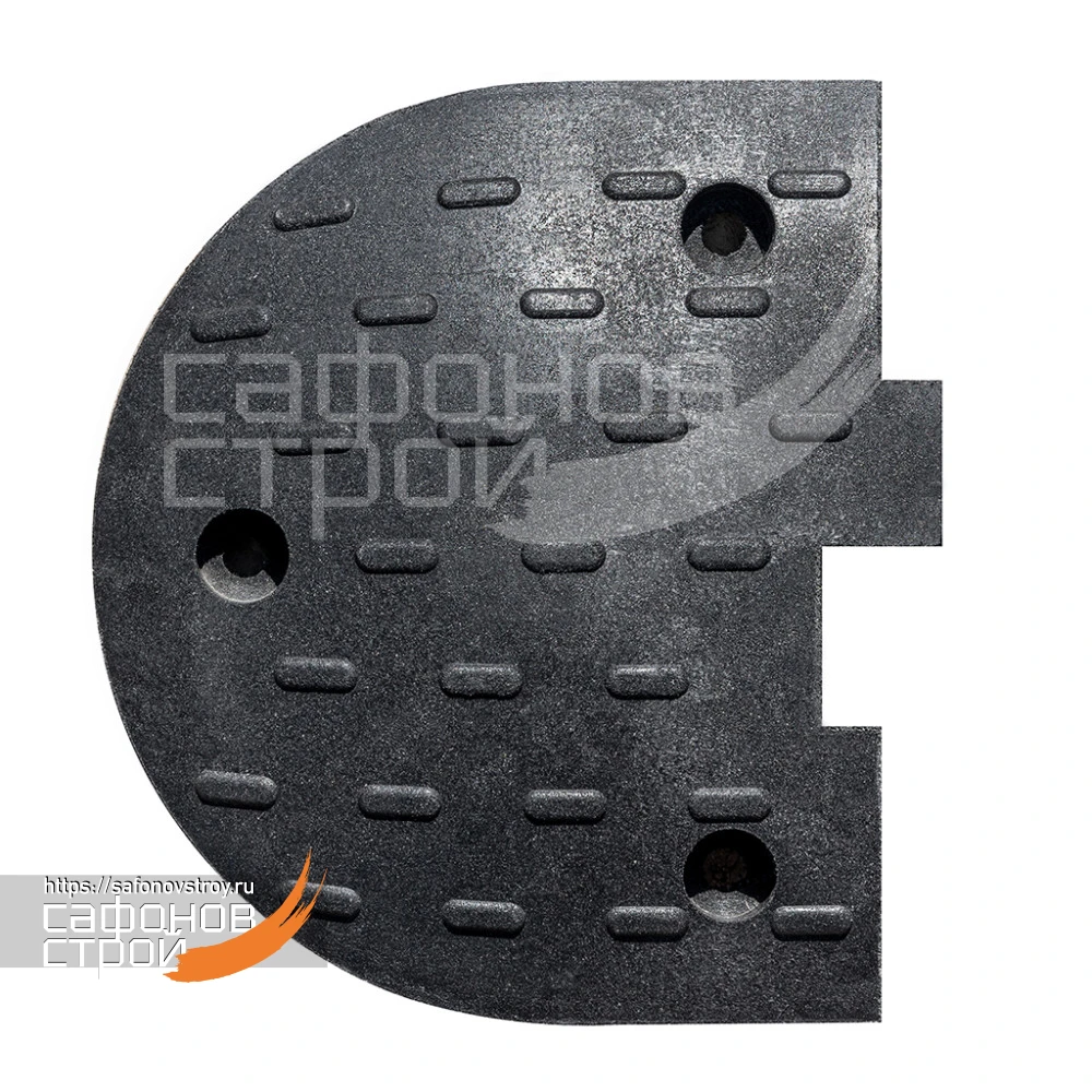 Концевой элемент для искусственной дорожной неровности изготовлен из прочного композитного материала чёрного цвета. Применяется для завершения конструкции, собранной из элементов искусственной дорожной неровности шириной 300мм. Изготовлен в соответствии с требованиями СТО 64311476-002-2015.