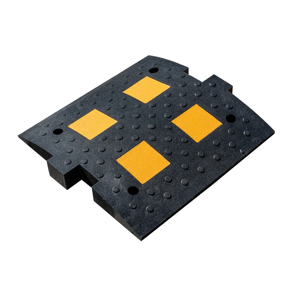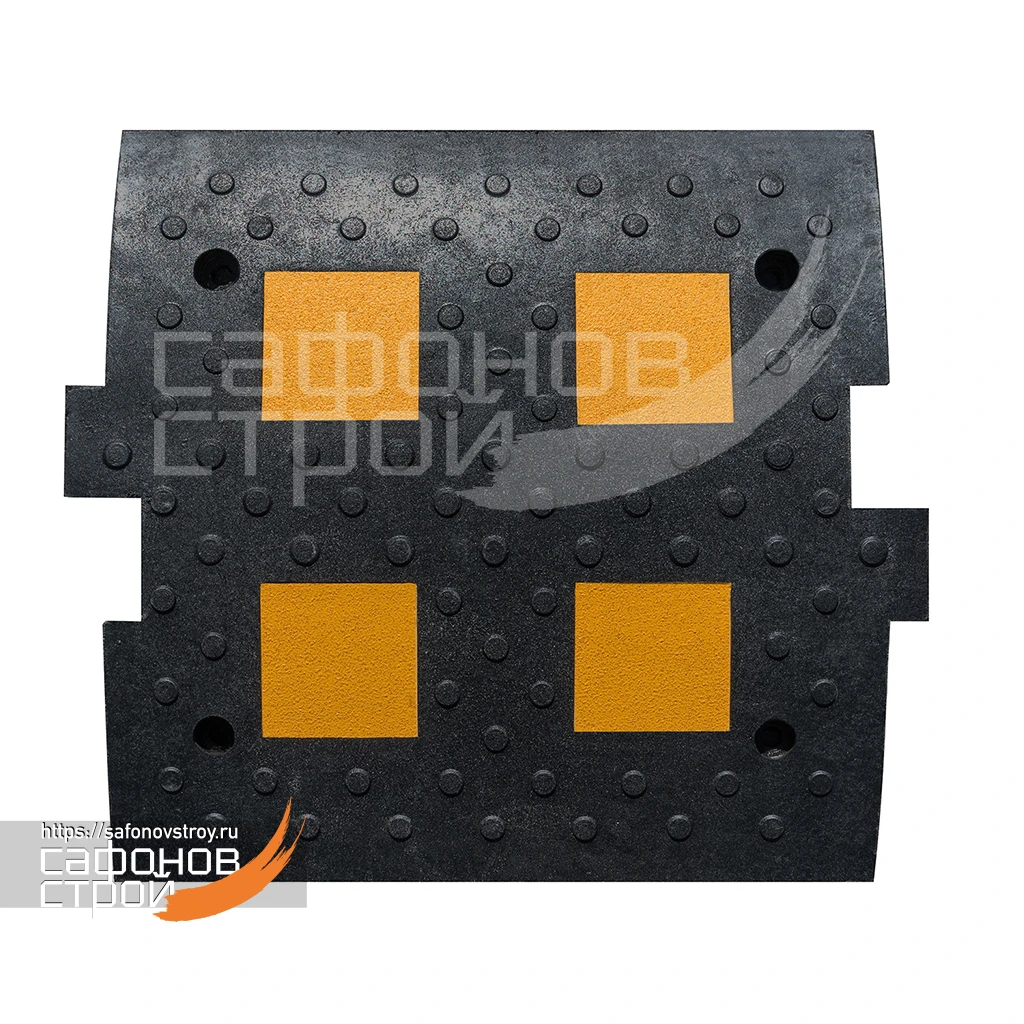 Искусственная дорожная неровность изготовлена из прочного композитного материала чёрного цвета со встроенными светоотражающими элементами желтого цвета. Искусственная неровность предназначена для принудительного снижения скорости движения транспортных средств до 30 км/ч и применяется на внутренних территориях, где не требуется согласование в ГИБДД – это парковки, гаражные комплекс, дворы и прилегающие территории. Длина составляет 500 мм. Изготовлена в соответствии с требованиями ГОСТ Р 52605-2006.