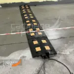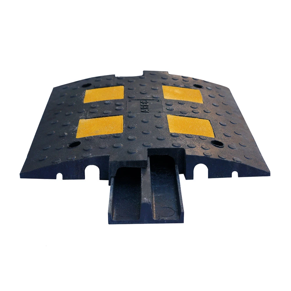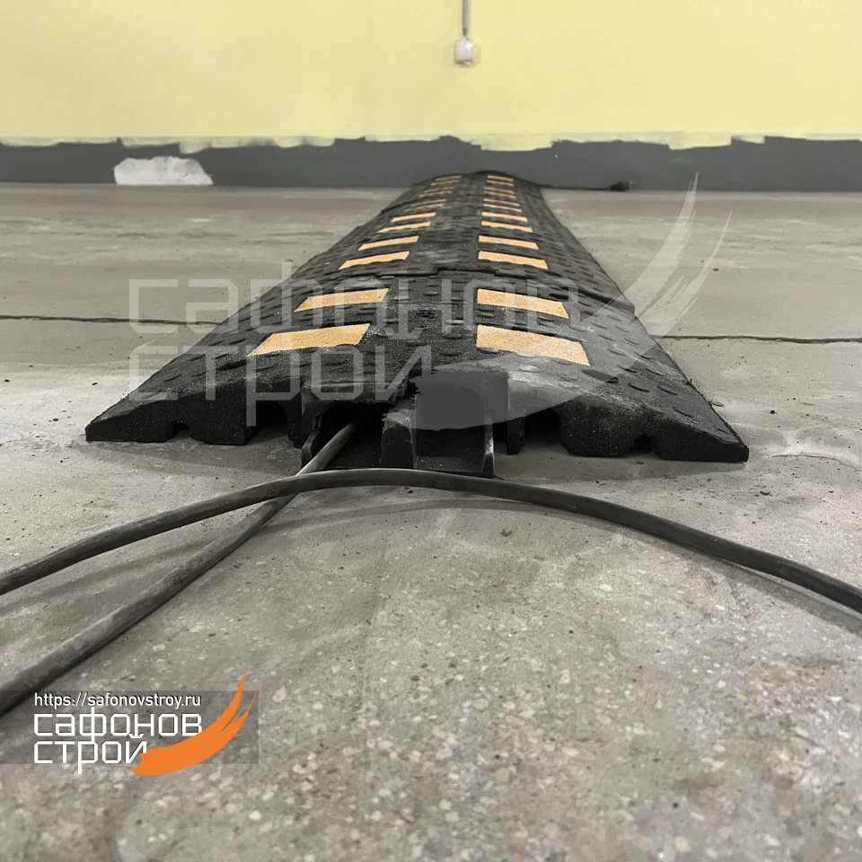 Искусственная дорожная неровность со встроенным кабель-каналом изготовлена из прочного композитного материала чёрного цвета со встроенными светоотражающими элементами желтого цвета. Кабельный канал дорожный предназначен для защиты проводов, труб и других коммуникаций от возможных повреждений. Применяется как на время проведения строительных работ, так и при обычной эксплуатации помещения. Длина одной секции составляет 500 мм. Неровность изготовлена в соответствии с требованиями ГОСТ Р 52605-2006.