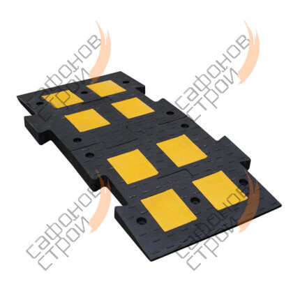 Концевой элемент для искусственной дорожной неровности изготовлен из прочного композитного материала чёрного цвета. Применяется для завершения конструкции, собранной из элементов искусственной дорожной неровности шириной 900 мм. Изготовлен в соответствии с требованиями СТО 64311476-002-2015.