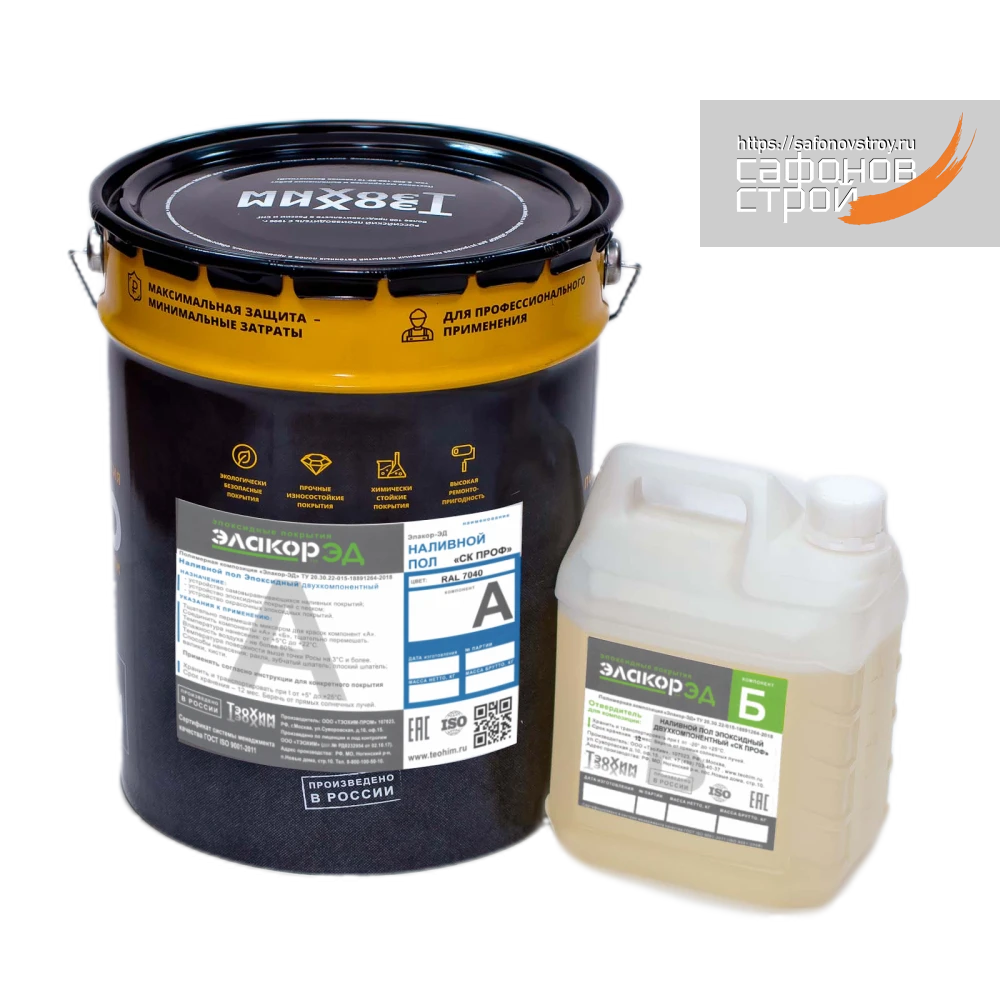 Элакор-ЭД Наливной пол СК-проф – самовыравнивающийся финишный эпоксидный двухкомпонентный компаунд для профессионального применения. Используется при устройстве наливных износостойких покрытий промышленных полов. После отверждения образует покрытие с высокими декоративными свойствами, высокой прочностью, износостойкостью и химической стойкостью. Без растворителя в составе, в момент нанесения отсутствует запах. Расход (А+Б) при толщине слоя 1 мм – 1,56 кг/м2.