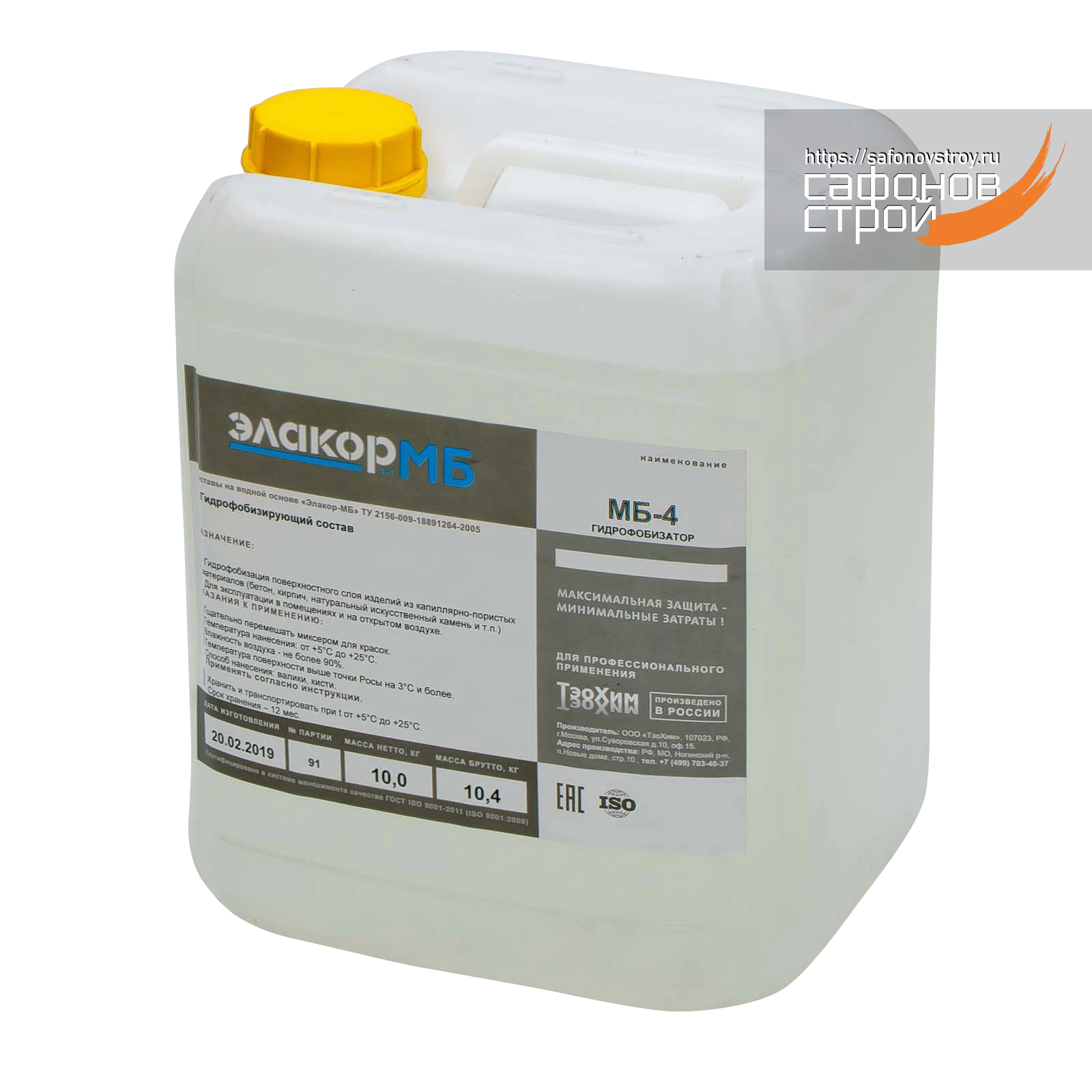 — Элакор-МБ4 гидрофобизатор – однокомпонентный материал, поставляемый в готовом виде. Перемешивание не требуется.