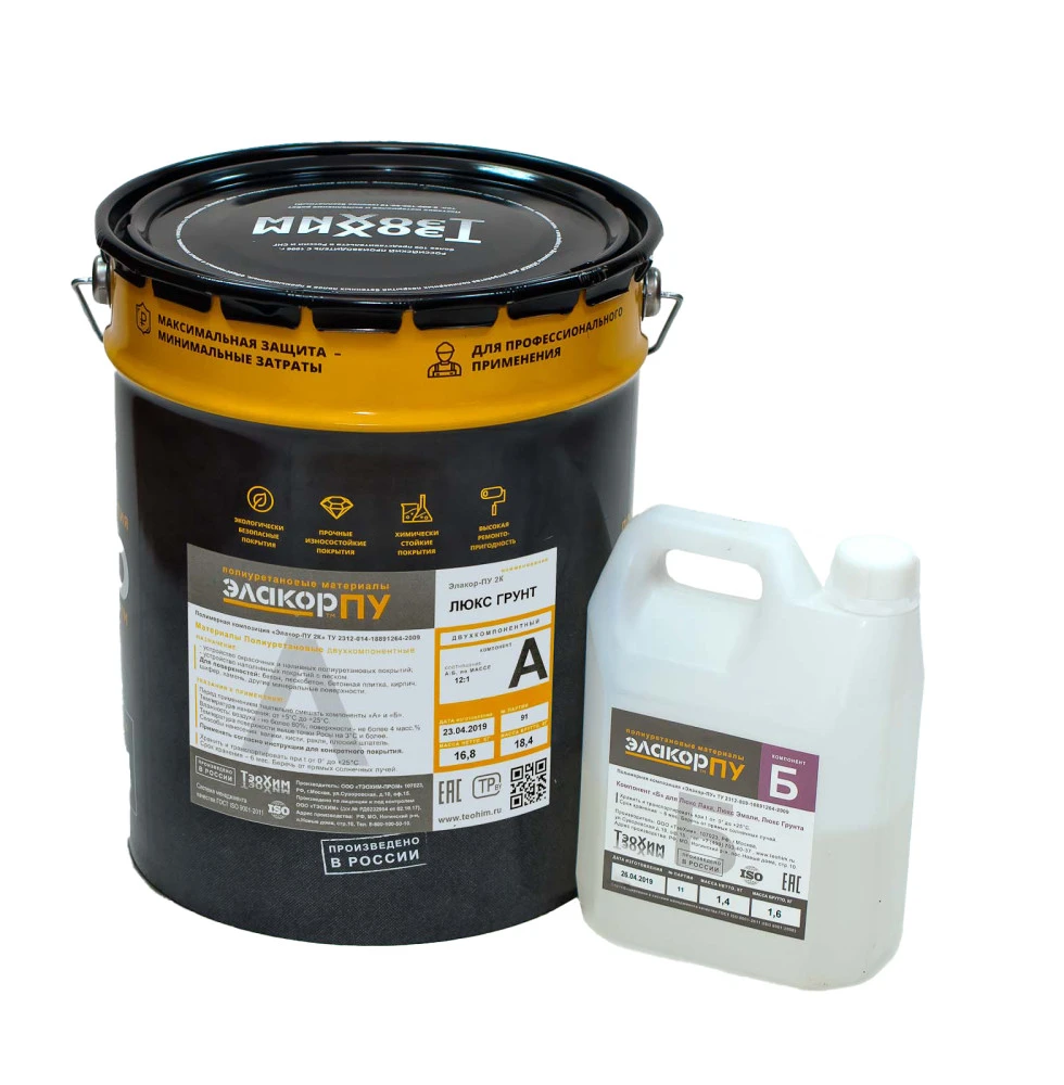 Элакор-ПУ Грунт Люкс – двухкомпонентный материал. При перемешивании компонента А, постепенно добавить компонент Б, перемешать до однородного состояния.