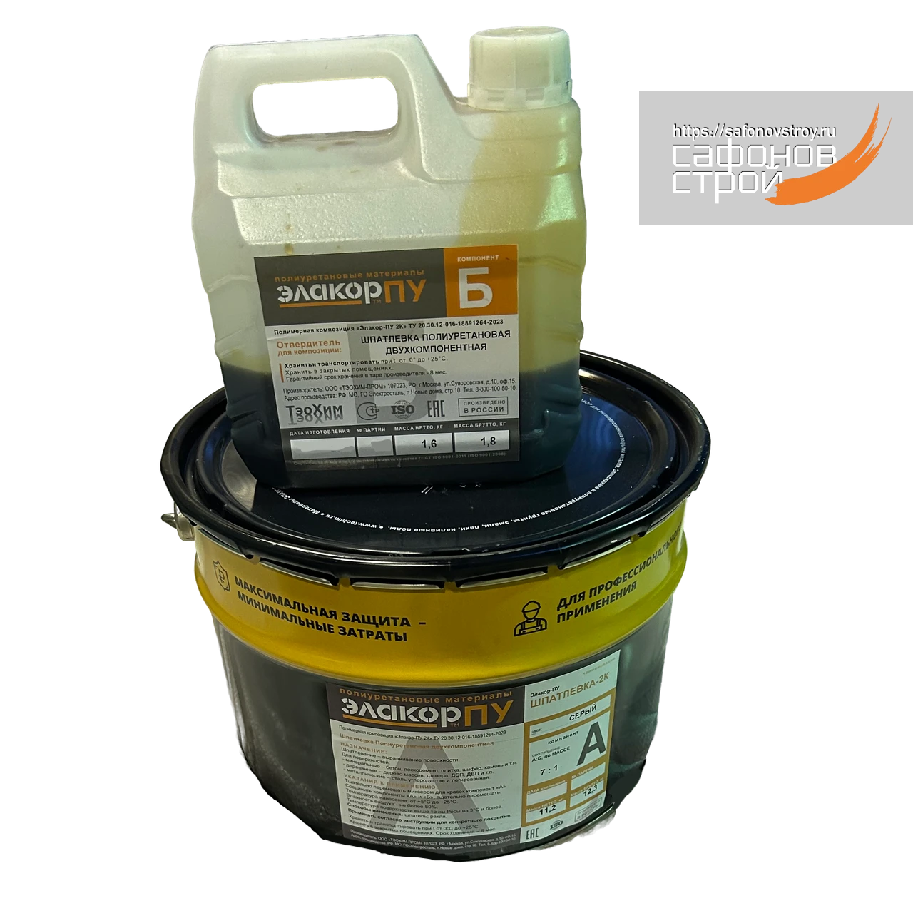 Фасовка: металлическое ведро 11.2 кг + пластиковая канистра 1.6 кг, итого комплект 12,8 кг