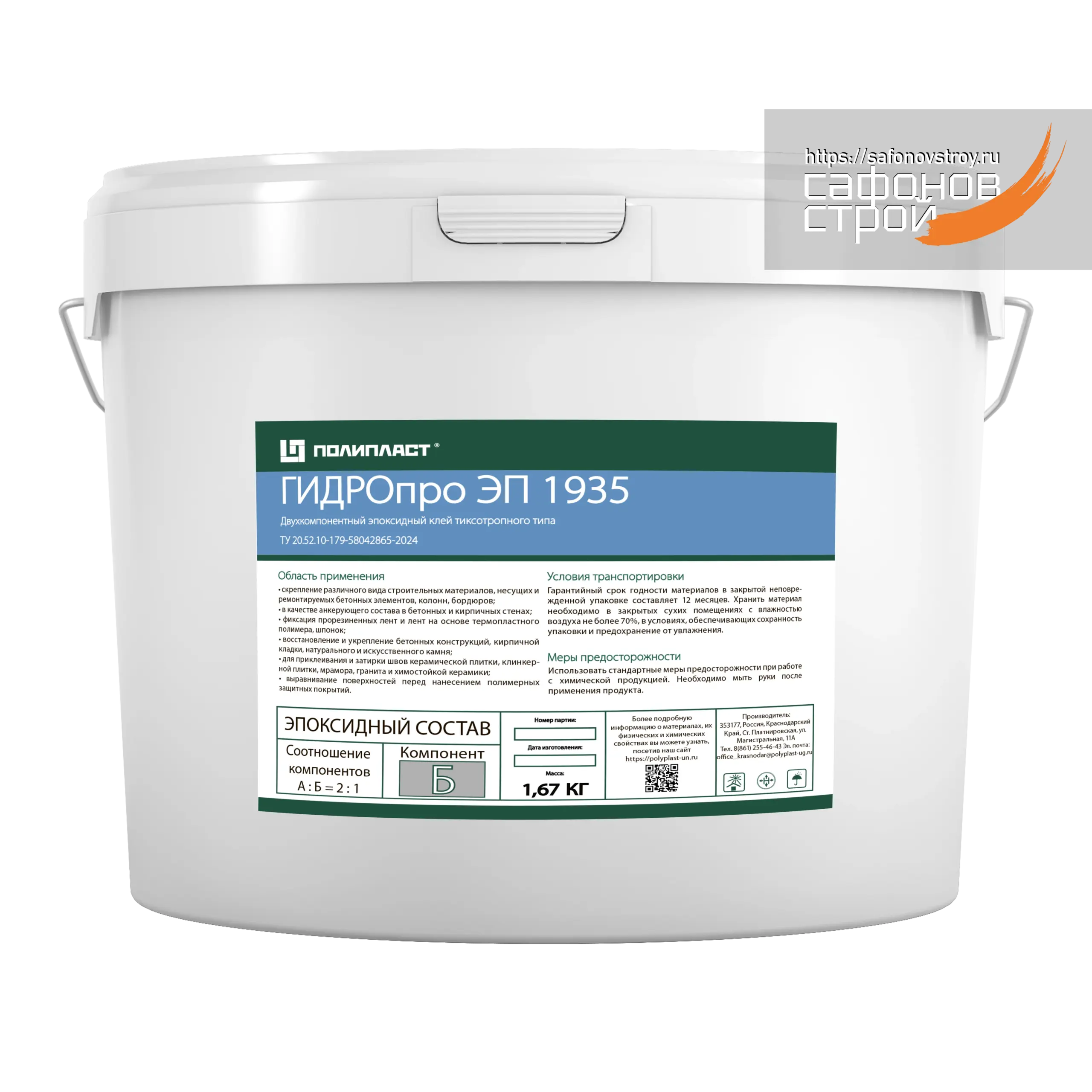 Материал ГИДРОпро ЭП 1935 компонент Б, банка 1,67 кг — клей для гидроизоляционной ленты, не применяется в самостоятельном виде, только вместе с основой, компонентом А! Будьте внимательны при заказе!