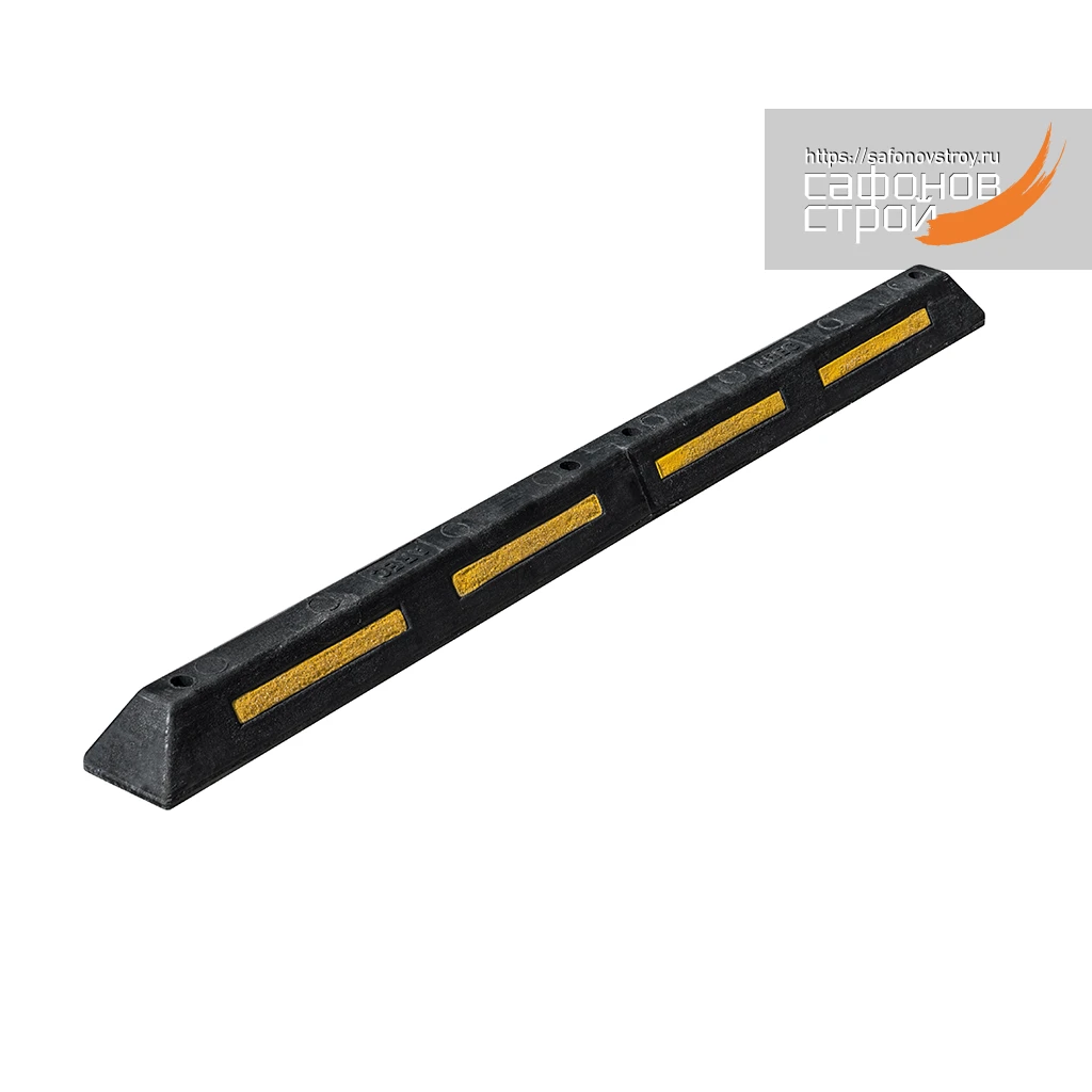 Колёсоотбойник изготовлен из прочного композитного материала чёрного цвета со встроенными светоотражающими элементами желтого цвета. Колёсоотбойник предназначен для безопасного ограничения движения транспортных средств в зонах стоянки автомобилей. Общая длина составляет 1830 мм, состоит из двух частей по 915 мм. Соответствует требованиям СТО 64311476-002-2015.