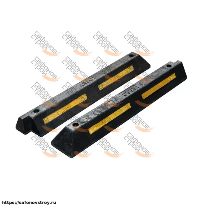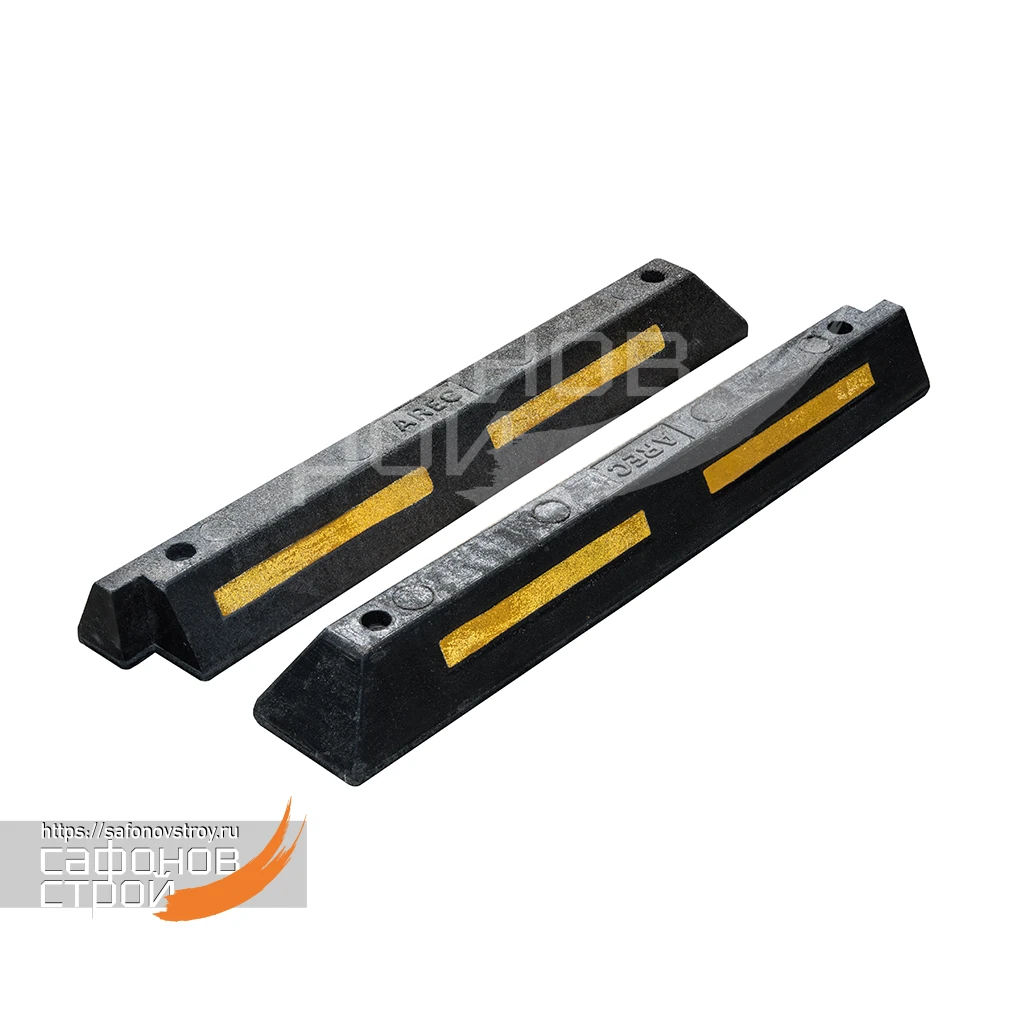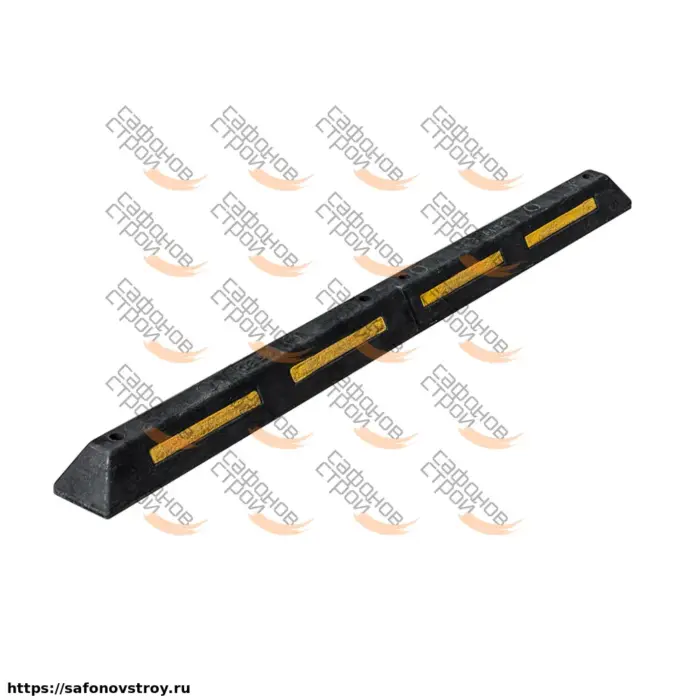 Колёсоотбойник изготовлен из прочного композитного материала чёрного цвета со встроенными светоотражающими элементами желтого цвета. Колёсоотбойник предназначен для безопасного ограничения движения транспортных средств в зонах стоянки автомобилей. Общая длина составляет 2000 мм, состоит из двух частей по 1000 мм. Соответствует требованиям СТО 64311476-002-2015.