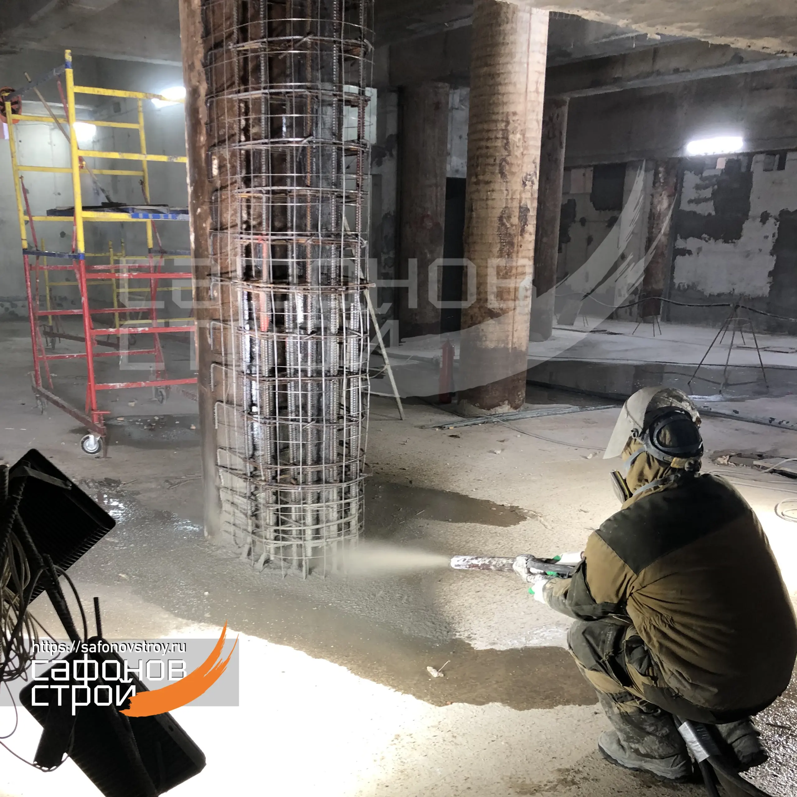 Смесь для торкретирования сухим способом армированная полимерной фиброй. Прочность 50 МПа. Используется для возведения тонкостенных железобетонных конструкций, устройства отделки в тоннелях. Конструкционный ремонт бетонных, железобетонных и каменных конструкций