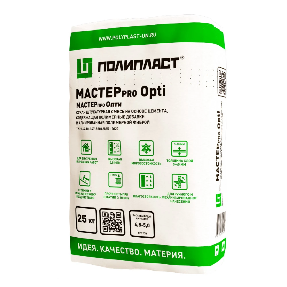 МАСТЕРпро Опти Штукатурка цементная с фиброй 25 кг