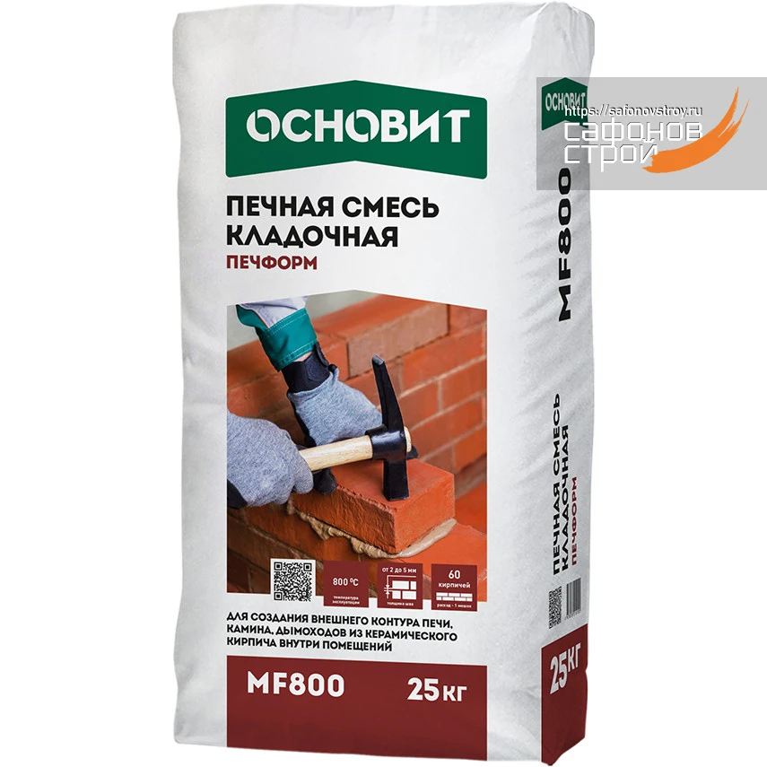 Печная смесь кладочная Печформ МF800 предназначена для создания внешнего контура печи, камина, дымоходов из керамического кирпича внутри помещений. Обладает высокой пластичностью, надежно фиксирует элементы кладки. Максимальная температура эксплуатации 800°С.