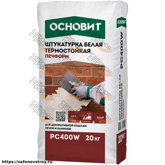 Термостойкая штукатурка Печформ PC400 W предназначена для декоративной отделки печей и каминов. Допускается применять в притопочной области, зоне варочной плиты, на ближних к топке боковинах печи или камина. Максимальная температура эксплуатации 400°С. Не требует дополнительного шпаклевания. Применяется для создания фактурной поверхности при помощи валиков или шпателя.