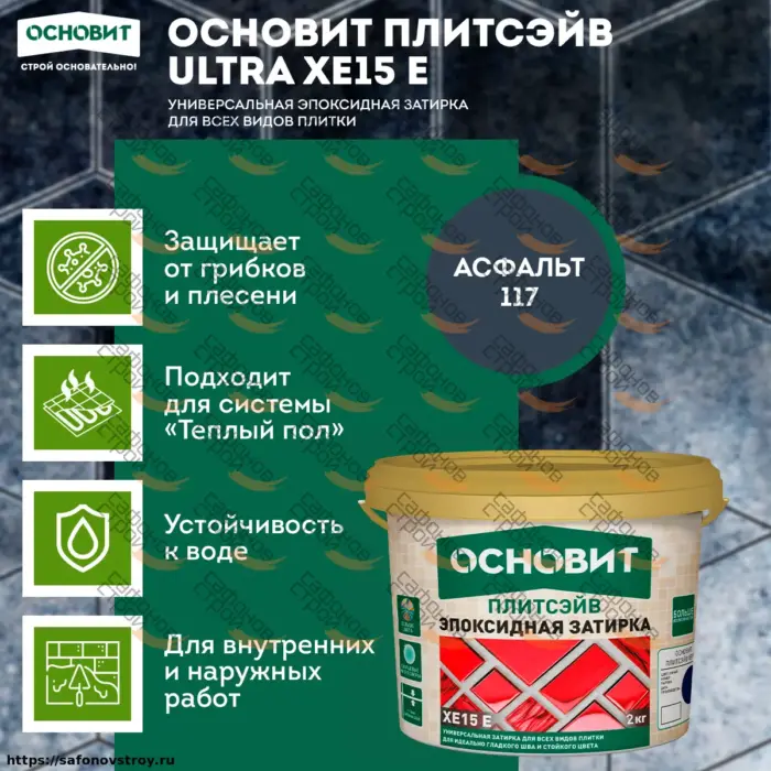Плитсэйв XE15 E Асфальт 117 (2 кг) Эпоксидная затирка эластичная