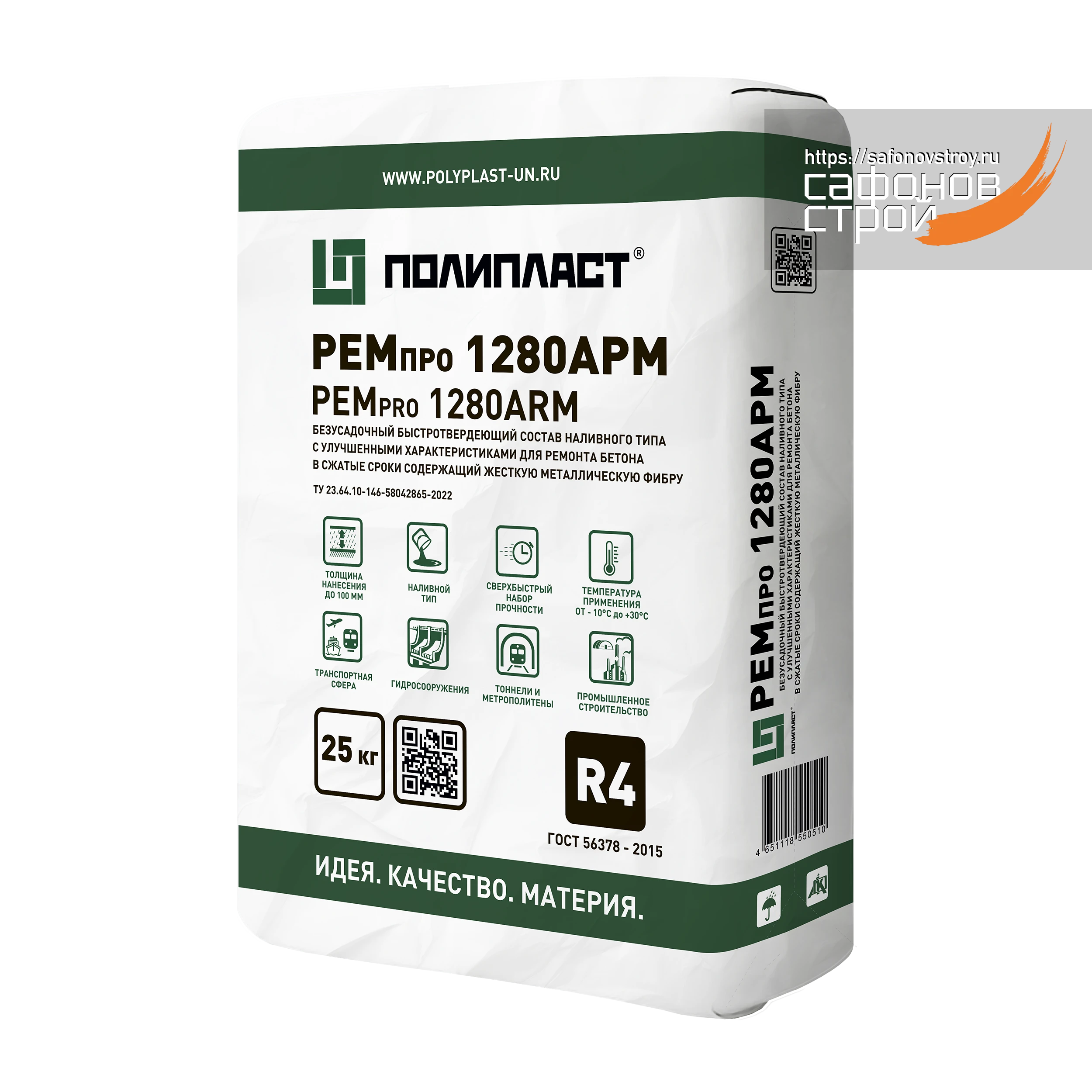 РЕМпро 1280 АРМ Зимний Ремсостав наливной быстрый 25 кг