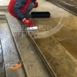 - Затем поверхность необходимо обработать щеткой и обильно смыть водой.
