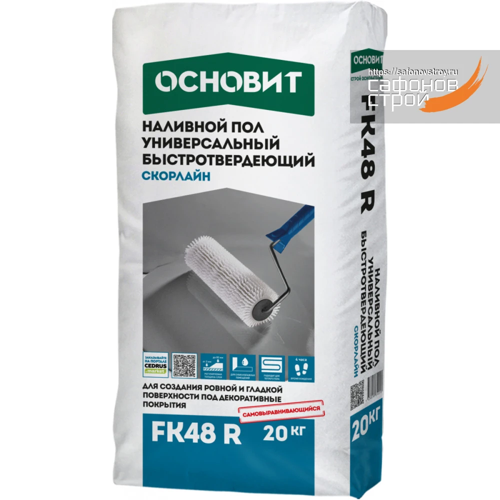 Наливной пол универсальный быстротвердеющий Основит Скорлайн FK48 R предназначен для предварительного и окончательного выравнивания оснований слоем от 3 до 80 мм в отапливаемых помещениях. Может применяться в качестве основания под укладку паркета, ковролина, линолеума, ламината, керамической плитки и других напольных покрытий. Применяется в системе «Тёплый пол». Используется для внутренних работ в помещениях с нормальным и повышенным уровнем влажности без прямого контакта с водой (кухни, ванные комнаты, санузлы, подвалы). Не эксплуатировать без финишного покрытия.