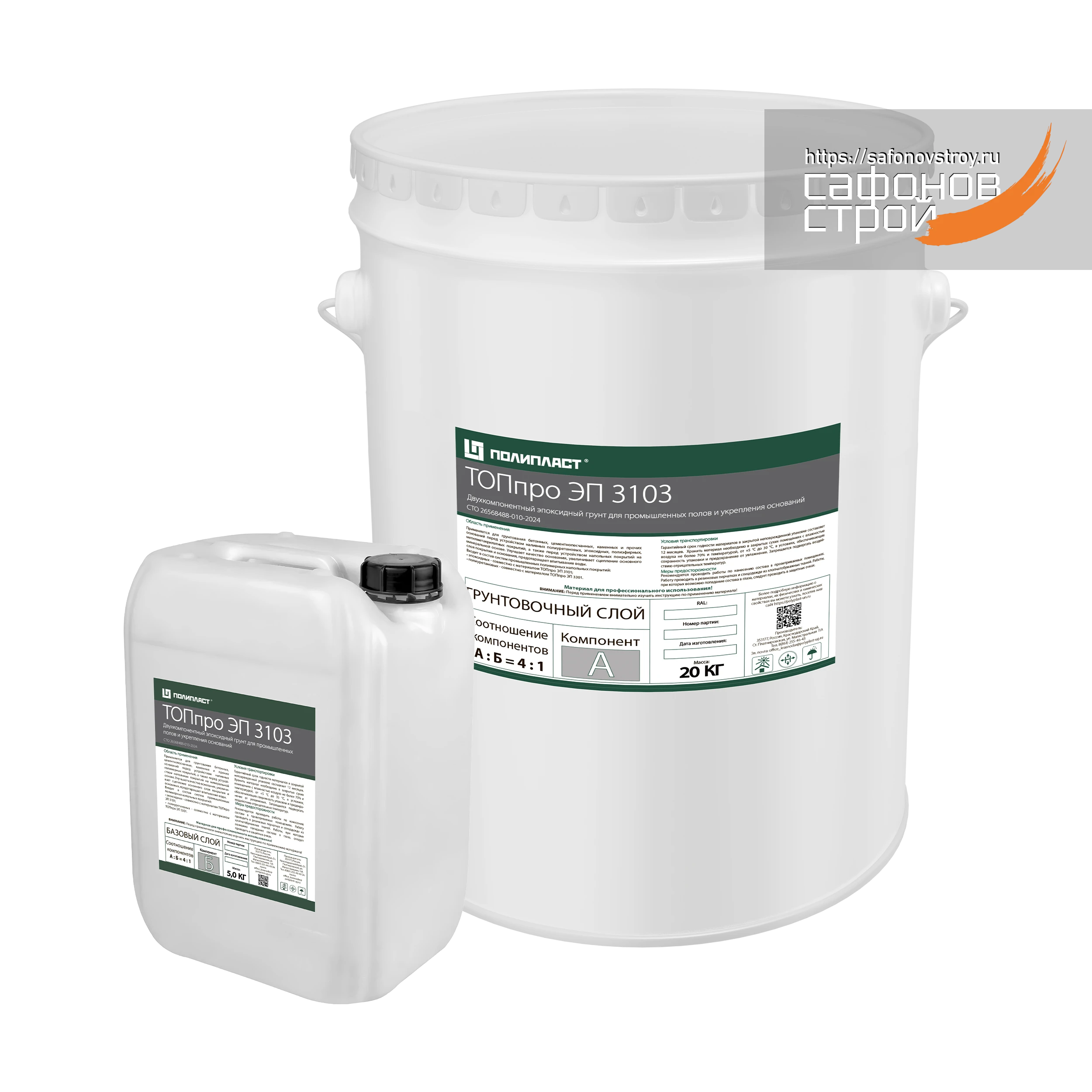 Фасовка: компонент А: металлическое ведро 20 кг + компонент Б: пластиковая канистра 5 кг, итого комплект 25 кг.