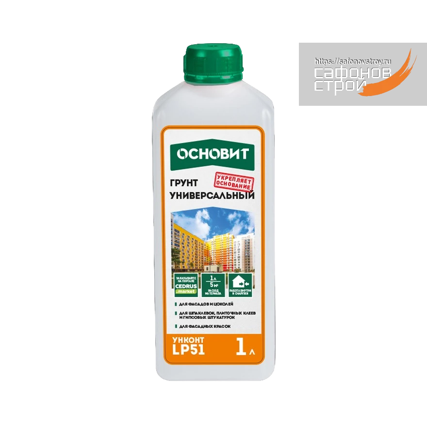 Универсальный грунт Основит Унконт LP51 предназначен для предварительной обработки и обеспыливания минеральных оснований. Применяется для подготовки поверхности под последующее нанесение отделочных материалов: штукатурок, шпаклёвок, плиточных клеев, красок. Особенно рекомендуется к применению в системах плиточной облицовки. Для внутренних работ.