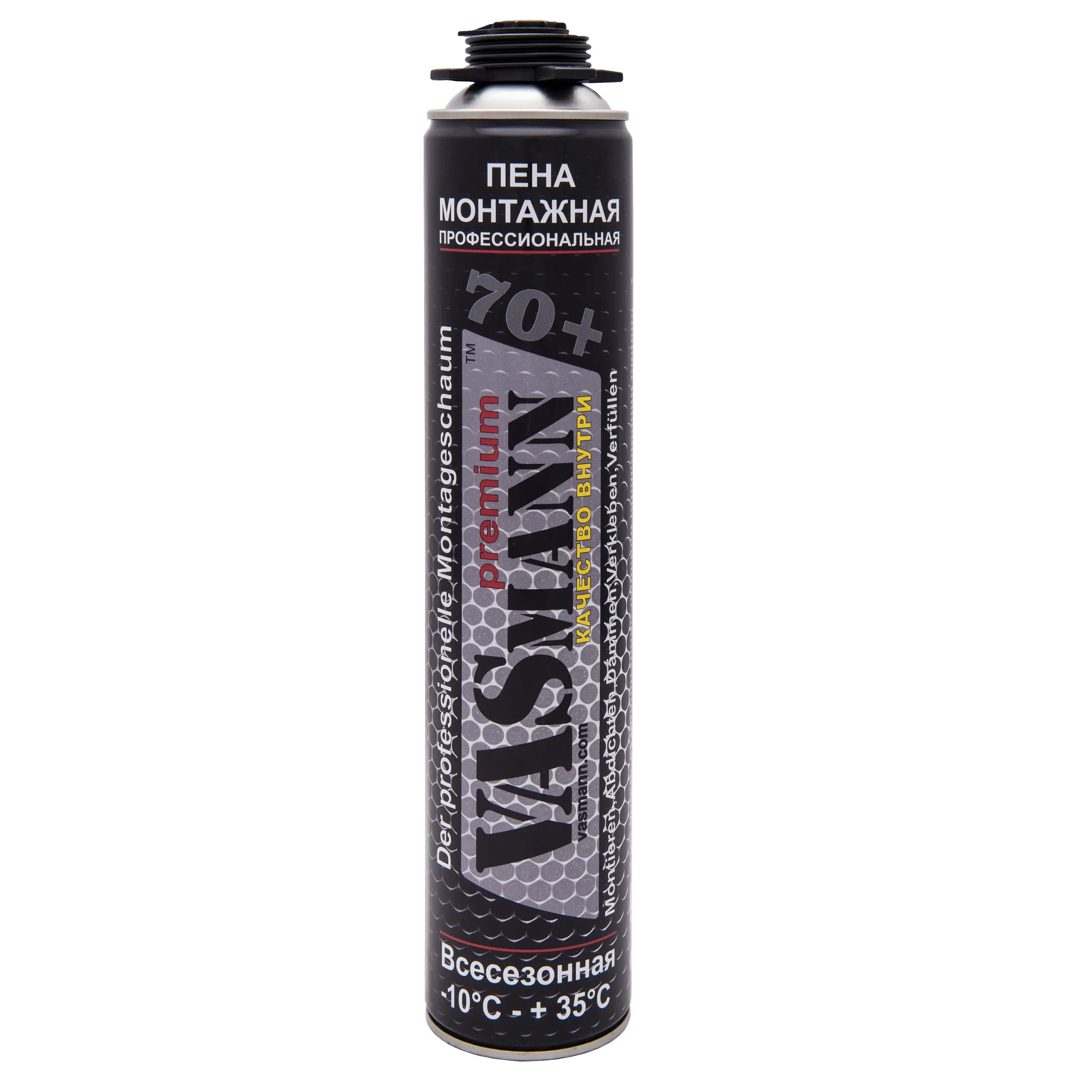Монтажная пена профессиональная VASmann Premium 70+ — это специально разработанный состав для использования строительными бригадами, компаниями, частными организациями. Основа пены монтажной профессиональной — полиуретан. Важным моментом является правильно созданная звукоизоляция, пена впитывает в себя все шумы, исключает звуковое воздействие извне. Также понижается потеря тепла через обработанную поверхность. Температура применения от – 10°С до + 35°С.