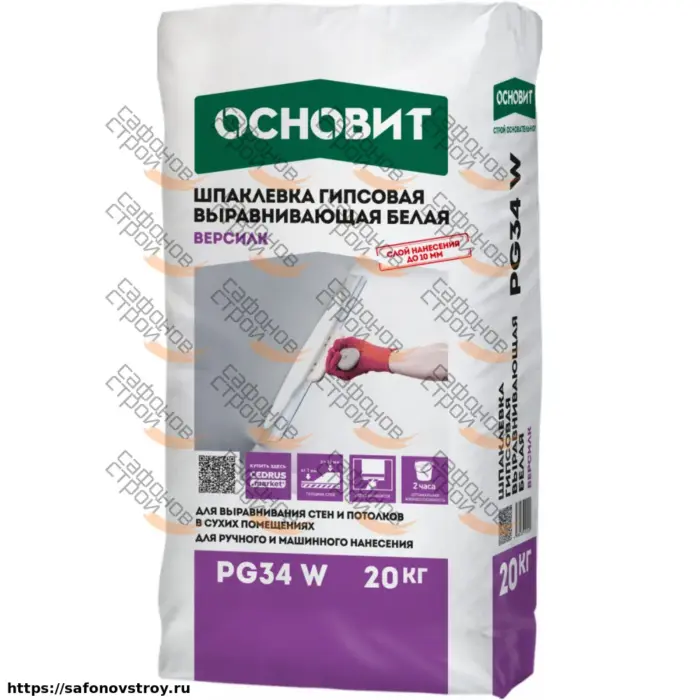 Версилк PG34 W Шпаклевка гипсовая выравнивающая белая 20 кг