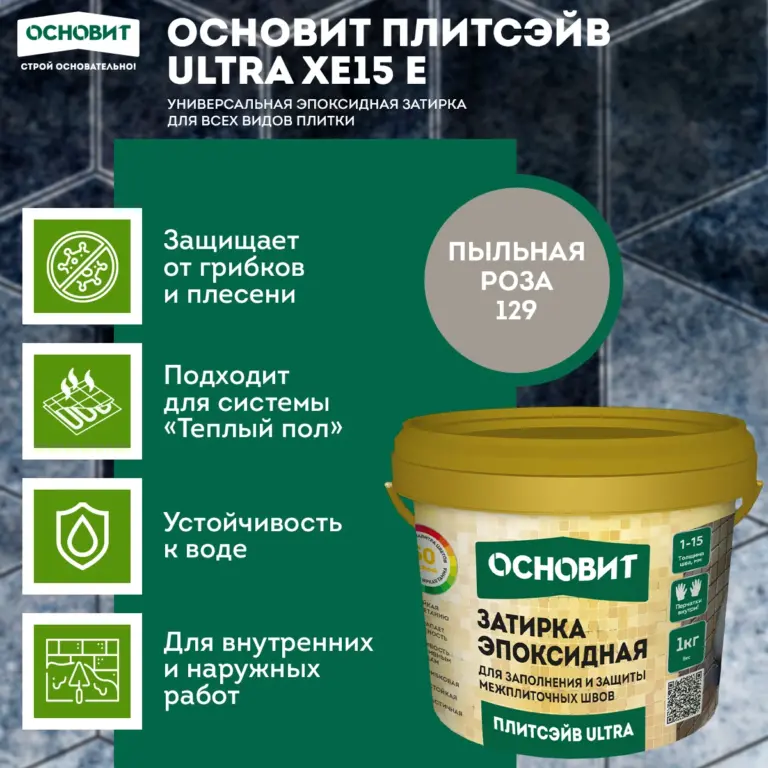 Плитсэйв ULTRA XE15 Е Пыльная роза 129 (1 кг) Эпоксидная затирка эластичная