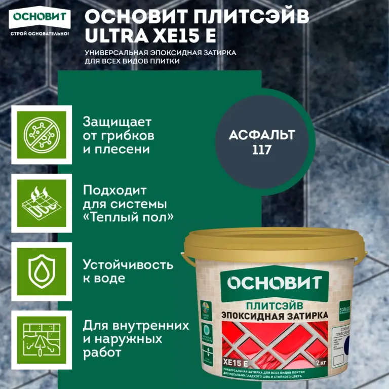 Плитсэйв XE15 E Асфальт 117 (2 кг) Эпоксидная затирка эластичная