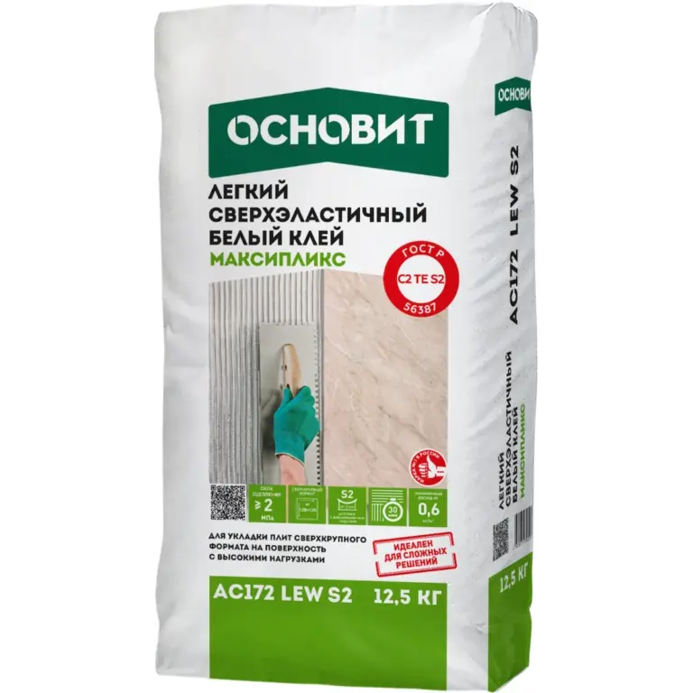 3612₽Максипликс AC172 LEW S2 Клей плиточный легкий сверхэластичный белый 12.5 кг